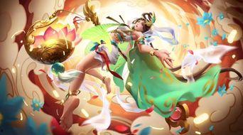 最让人惊艳的是大乔的大招“洛水映月”。在释放大招时,大乔会召唤出一轮明月,月光洒满战场,美轮美奂。而敌人被月光笼罩时,还会出现粉色的烟雾,给人一种梦幻般的感觉。